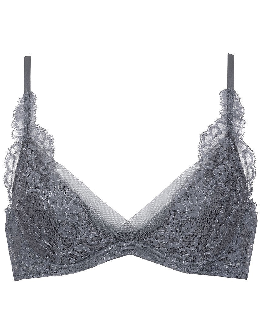 ●舒适轻盈的舒适因为使用了没有前侧高度的L字线,所以前中心的压迫很小,后面使用了一块弹力蕾丝,看起来也很轻盈自然。竖长的杯子形状从腋下整齐地抬起,前中心低轻盈的贴心。●使身体的线条变得美丽。手感好,使用注重柔软伸展的材料,轻盈舒适地贴合皮肤。